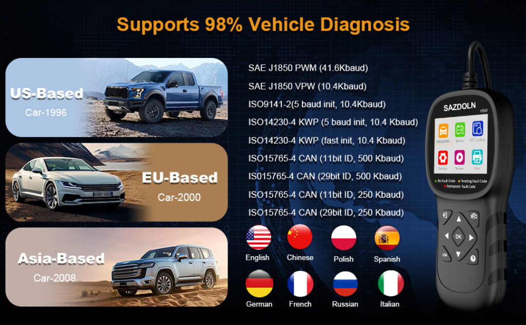 - Easy to use and portable: plug-and-play power, clear UI, quick code read/clear, and helpful shortcuts; suitable for novices.